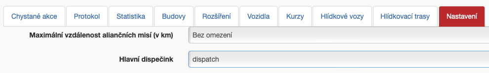 Jakékoli své operační středisko můžete nastavit jako hlavní dispečink v rozbalovací nabídce v horní části karty Nastavení v nabídce operačního střediska.