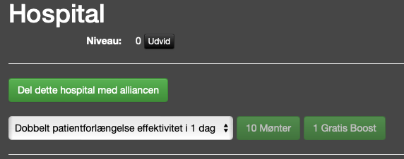 Hvis du ikke vil vente på din ugentlige forstærkning, kan yderligere Hospitalsudvidelsesforstærkninger købes med Mønter. Dette er nyttigt i akutte situationer eller under længere perioder med høj belastning.