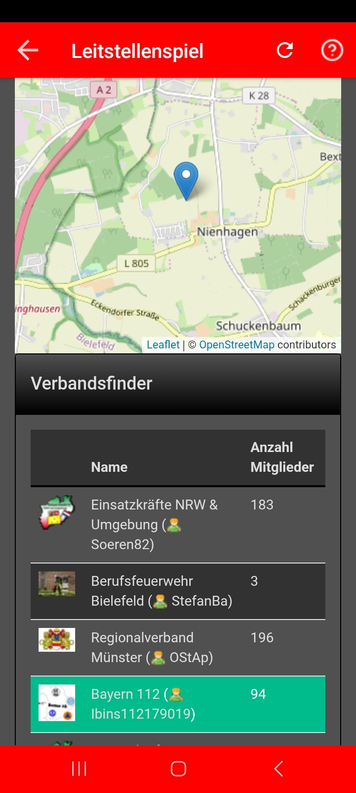 Der Verbandsfinder prüft, ob Spieler in dem Gebiet Leitstellen haben und in den letzten 24 Stunden aktiv waren, und zeigt deren Verbände an – so werden nur Verbände mit aktiven Mitgliedern angezeigt. Es können bis zu 30 Verbände mit ihrer aktuellen Mitgliederzahl angezeigt werden.
