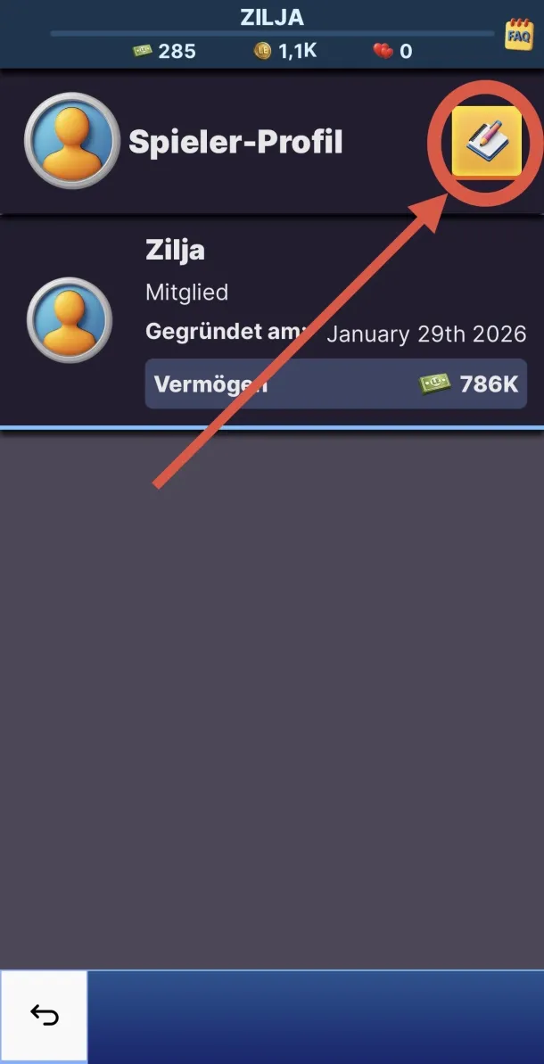 - Klicke auf den "Profil"-Knopf um dein Profil zu öffnen