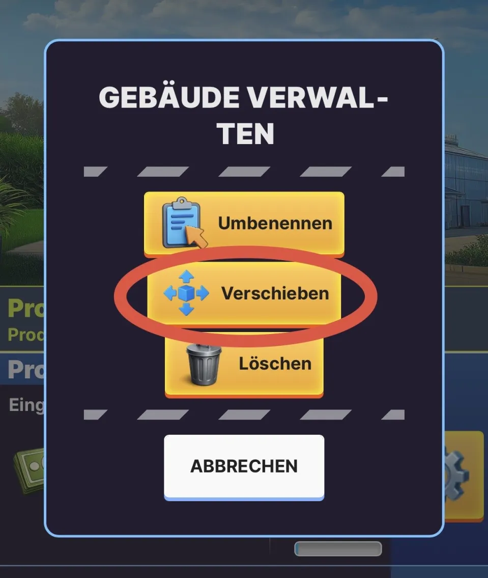 TIPP: Verschieben ist nicht möglich während Lieferungen von oder zu dem Gebäude noch im Gange sind, aber Verbesserungen oder Forschung im Gebäude werden nicht beeinflusst wenn du das Gebäude verschiebst