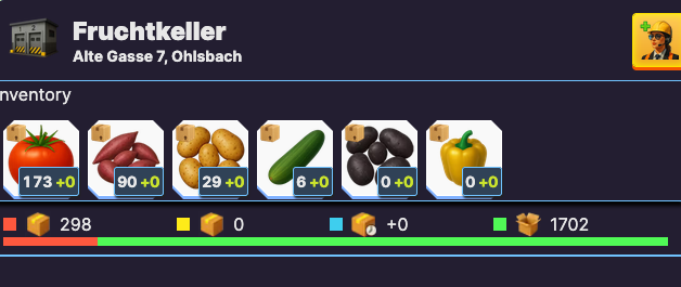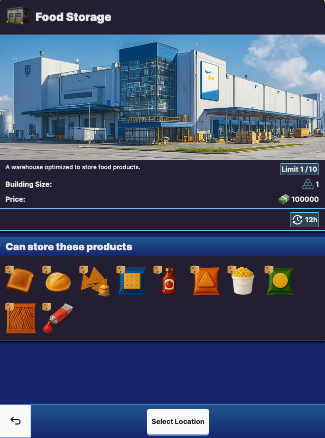 - Wenn du versuchst, ein Lagerhaus zu kaufen, kannst du sehen, welche Ressourcen es lagern kann: