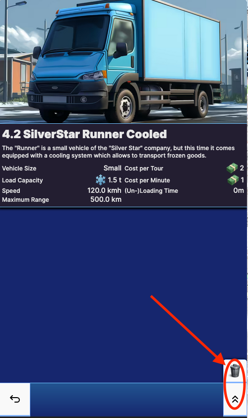 - Drück auf die „Löschen-Taste“ im Untermenü, um das Fahrzeug zu löschen.