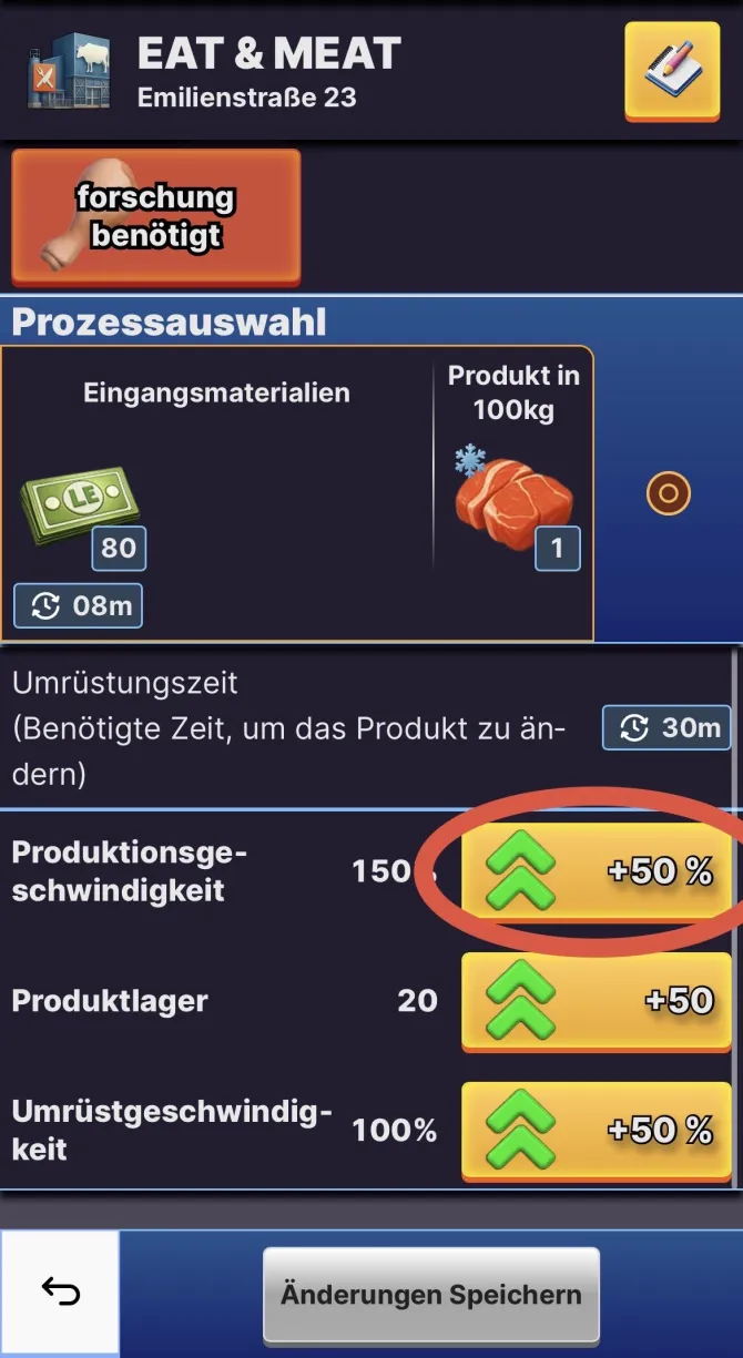 Deine Produktionslinien bestimmen, wie schnell du Waren produzieren kannst. Du kannst sie verbessern, um sie effizienter zu machen.
