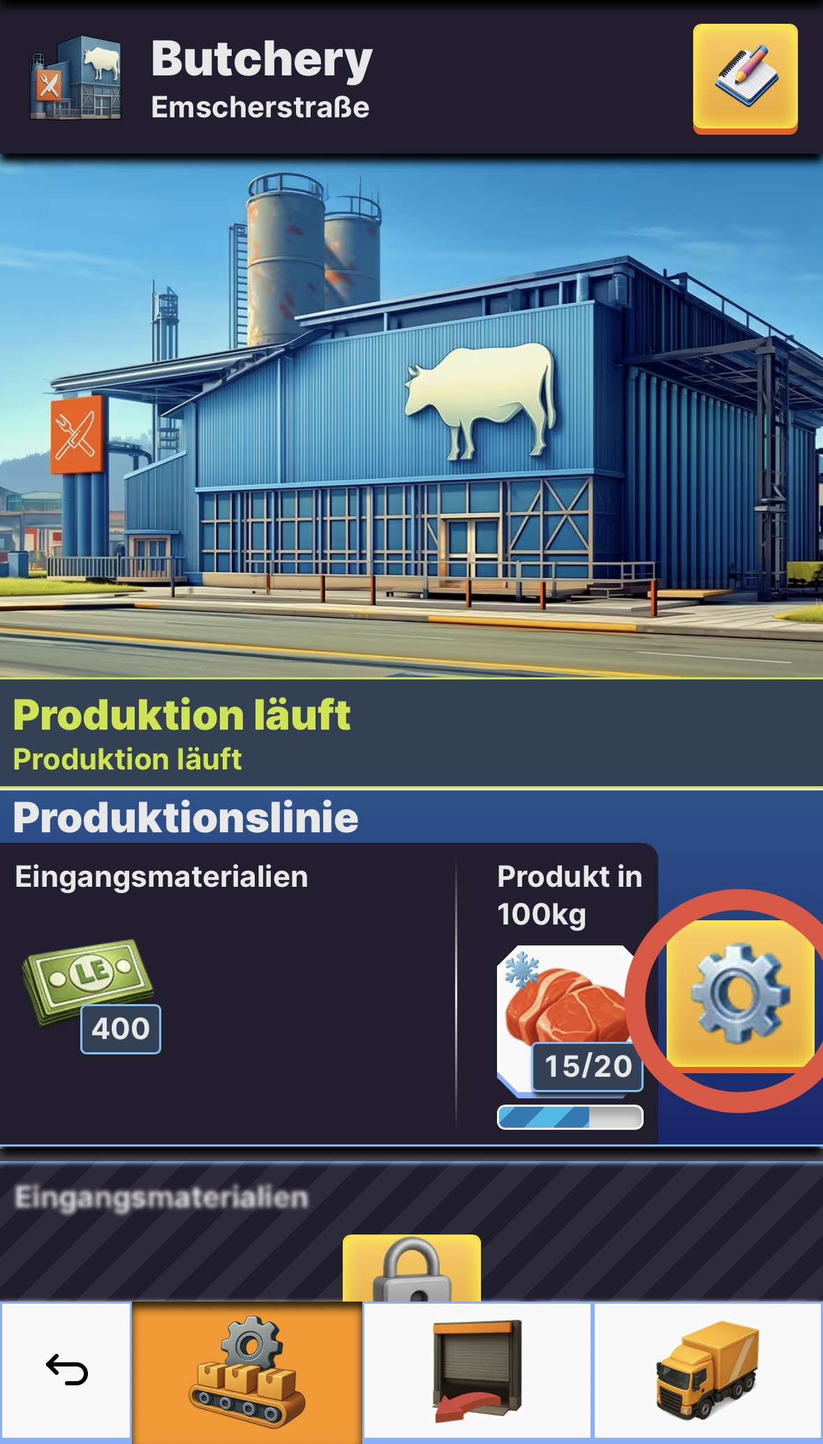 - Öffne eine beliebige Produktionslinie des Gebäudes.