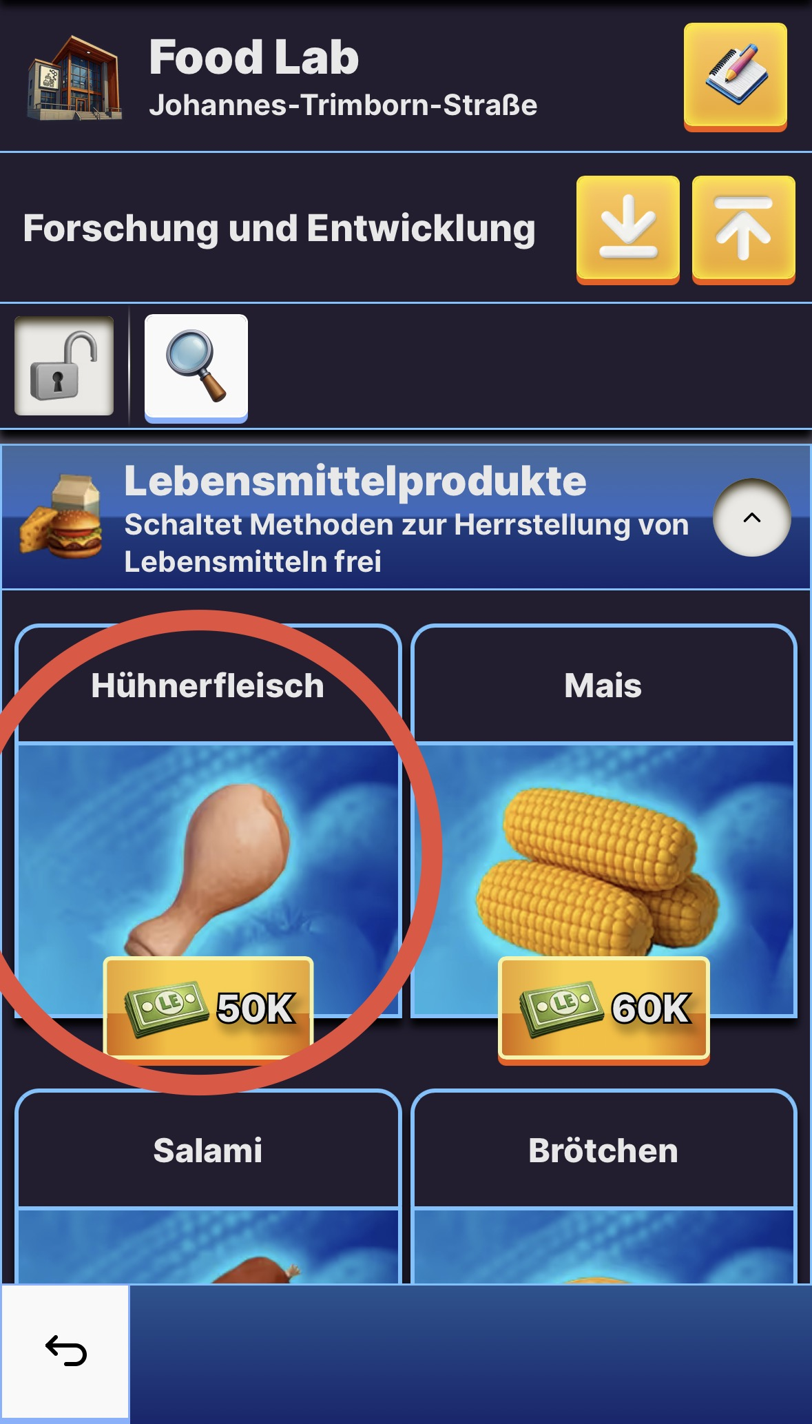 - Du benötigst ein Forschungszentrum und musst eine Forschung starten, die die gewünschte Ware freischaltet. Beachte, dass die Forschung eine Weile dauert bis sie abgeschlossen ist, es sei denn du bezahlst sie mit LE-Gold.