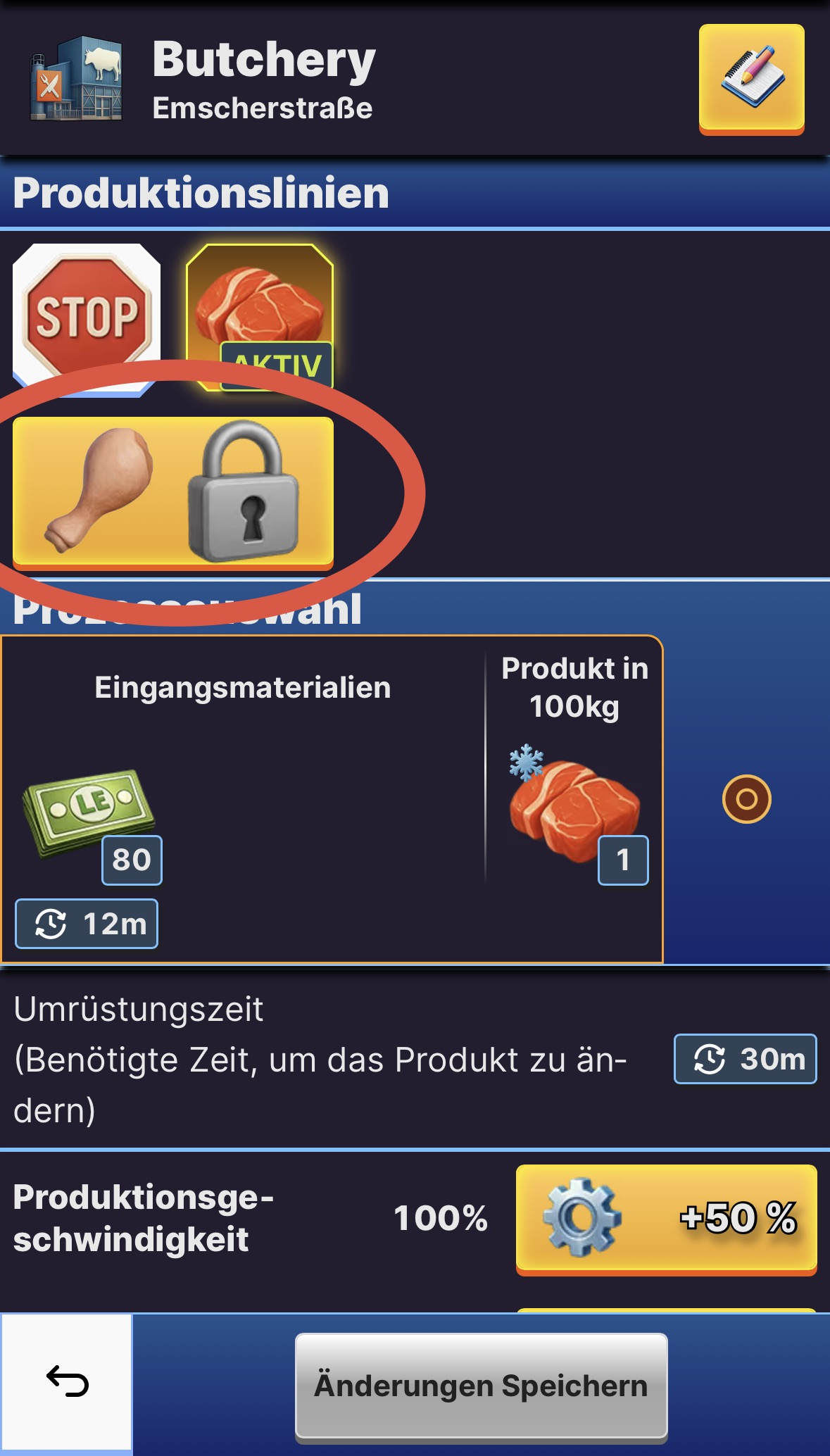 - Sobald der Entsperrungsvorgang beendet ist, kannst du jede beliebige Produktionslinie in diesem Gebäude anweisen die neue Ware zu produzieren.