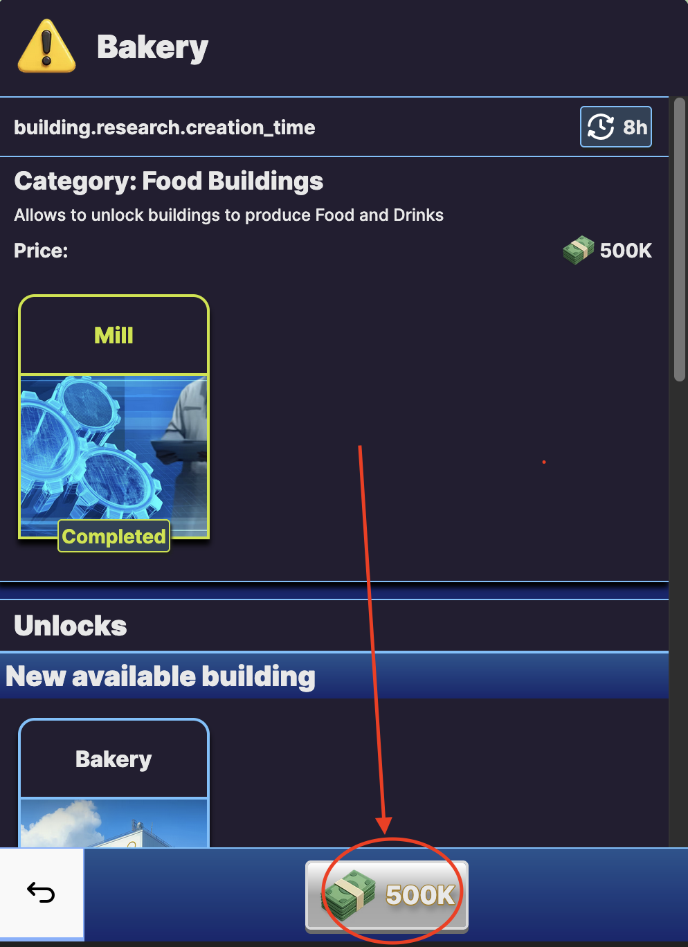 - Wenn du sicher bist, was du erforschen möchtest, klicke auf die Schaltfläche „Forschung starten“, bezahle die Kosten und warte, bis die Forschung abgeschlossen ist.