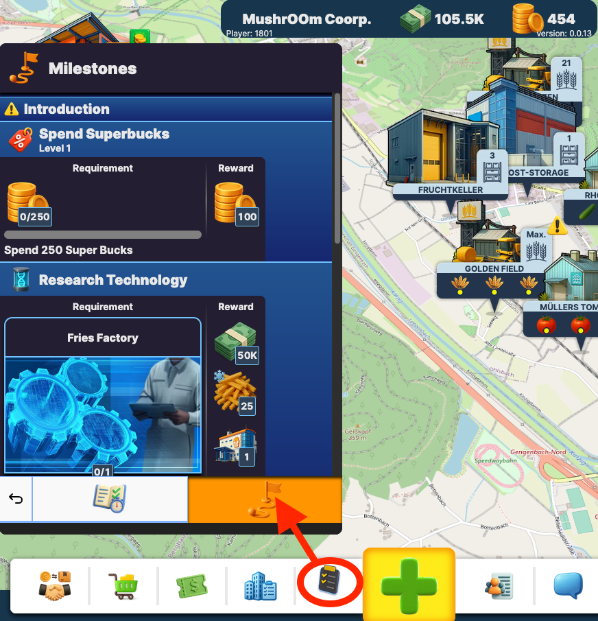 - Die Beschreibung jeder Aufgabe sagt dir, was du tun musst (z. B. 250 Super Bucks ausgeben).