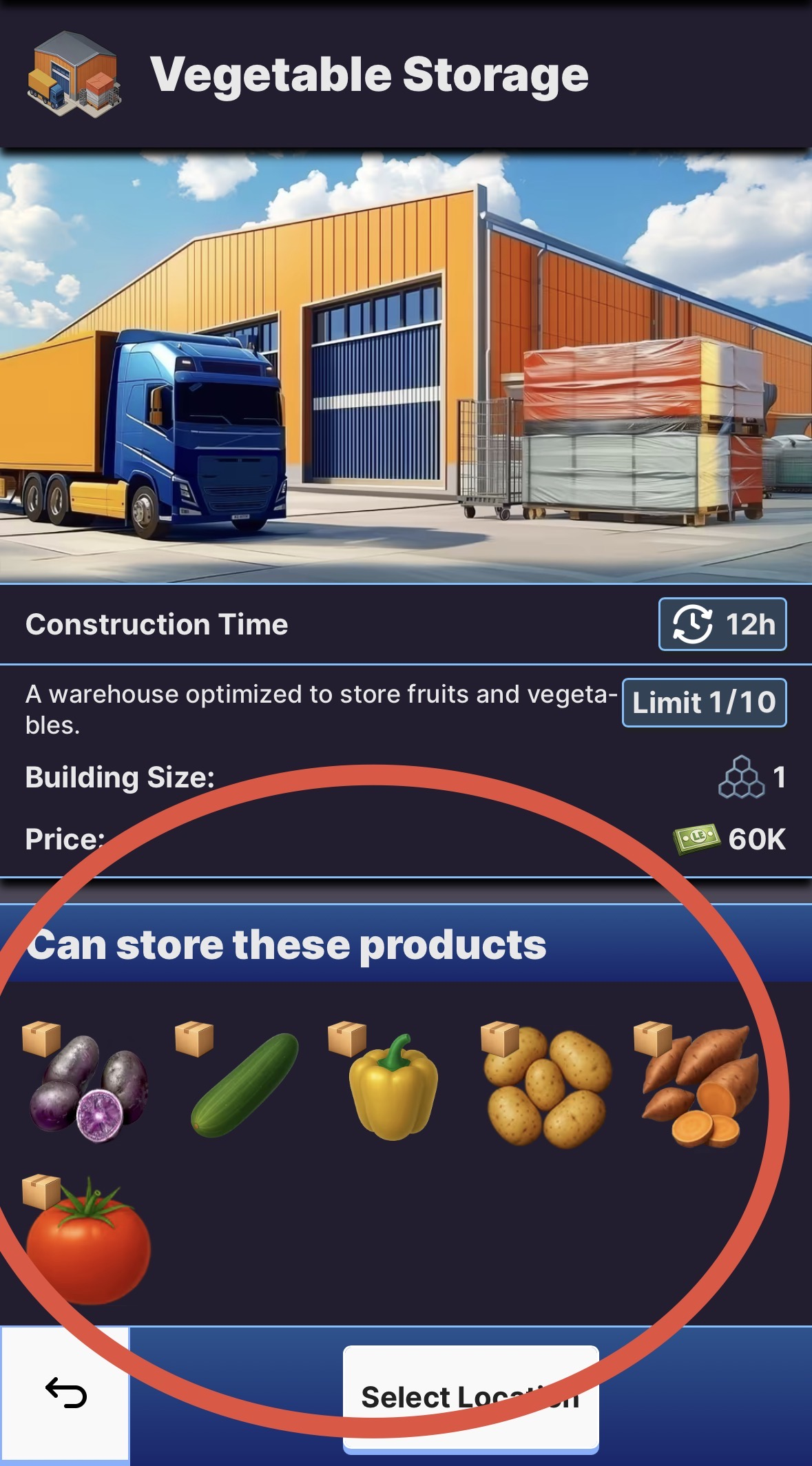 • If you try to buy a warehouse you are able to see which goods it can store: