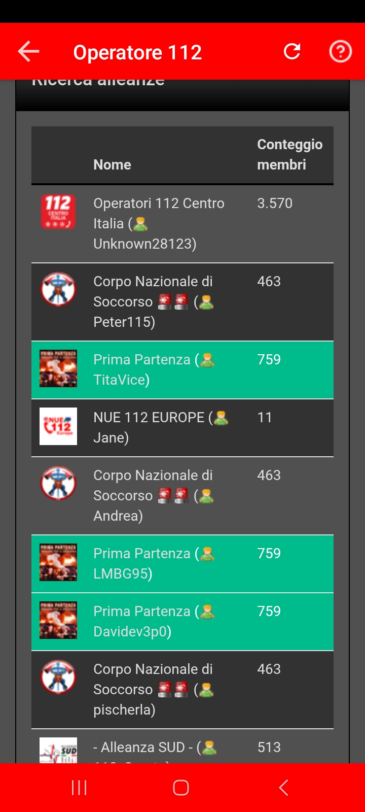 La Ricerca alleanze controlla i giocatori che hanno un punto di risposta nella zona e che sono stati attivi nelle ultime 24 ore. Così vengono mostrati solo i gruppi con membri attivi – fino a 30 alleanze, con il numero attuale di membri.