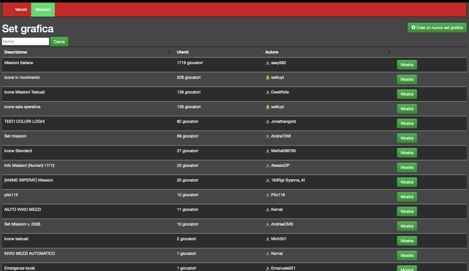 Vai su “Set grafica” nel menu principale e apri la scheda Missioni. Troverai una libreria di icone disponibili. Clicca su un set per vederlo e, se ti piace, scegli “Usa questo set grafica.”