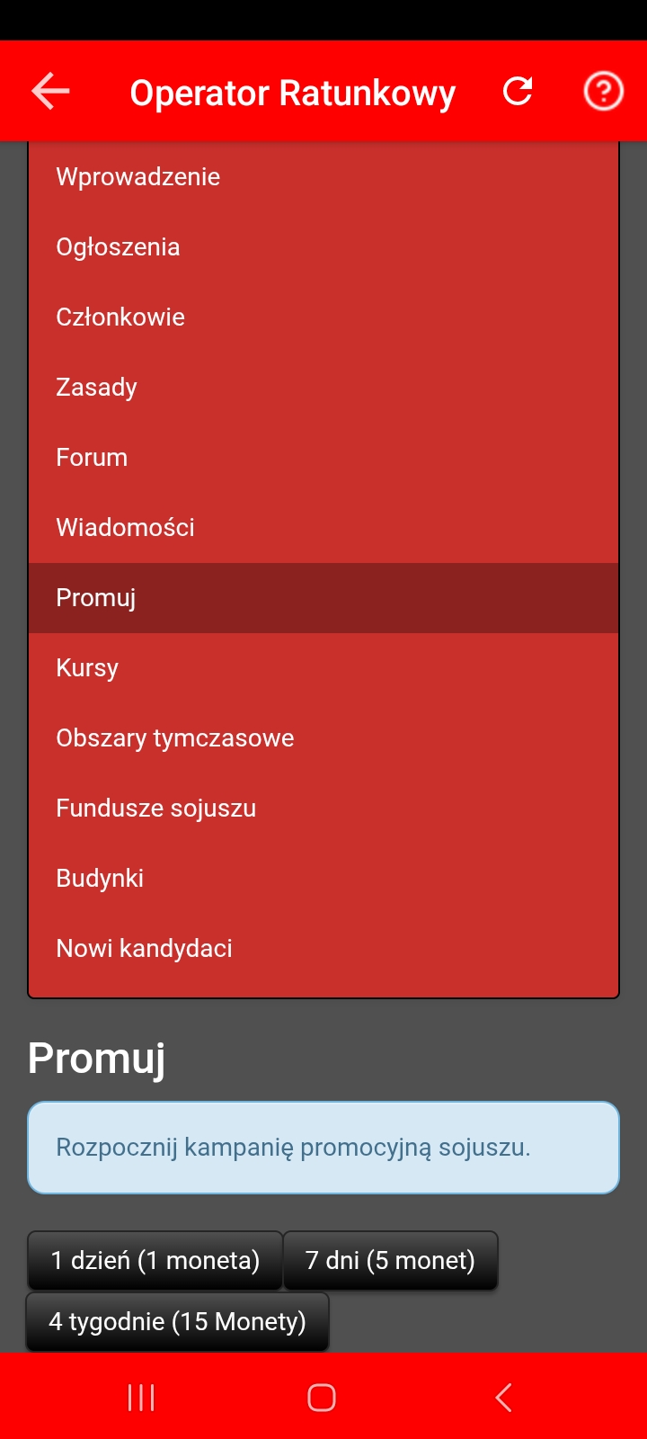 Jeśli już jesteście w sojuszu, możecie pokazać, że szukacie nowych członków, reklamując swój sojusz. Twój sojusz zostanie podświetlony na zielono na liście i w Wyszukiwaniu sojuszu.