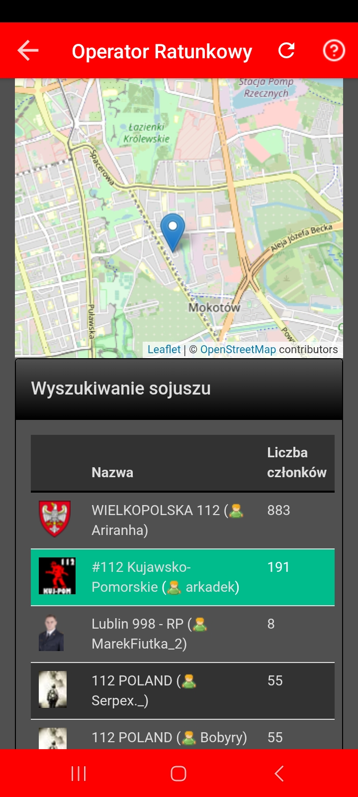 i listę sojuszy w okolicy.