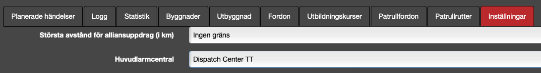 Du kan ställa in vilken svarpunkt som helst som huvudlarmcentral i rullgardinsmenyn högst upp i fliken Inställningar i Svarpunkt-menyn.